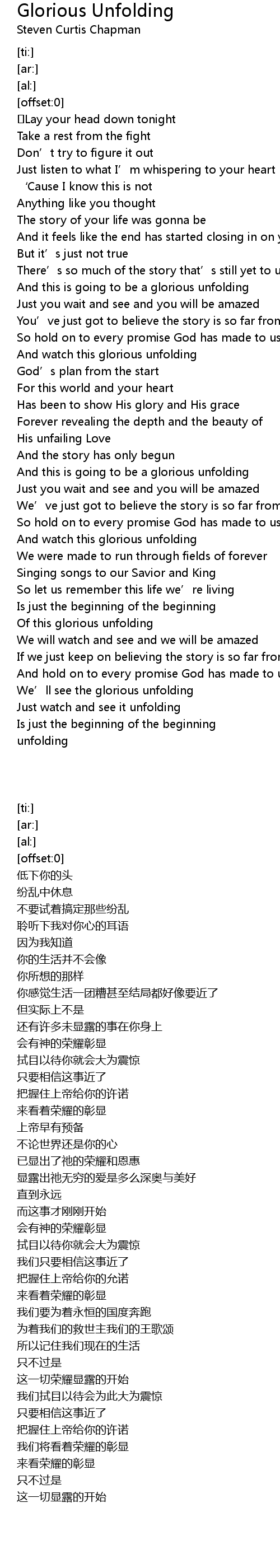 | [02:36.88] | And this is going to be a glorious unfolding |
