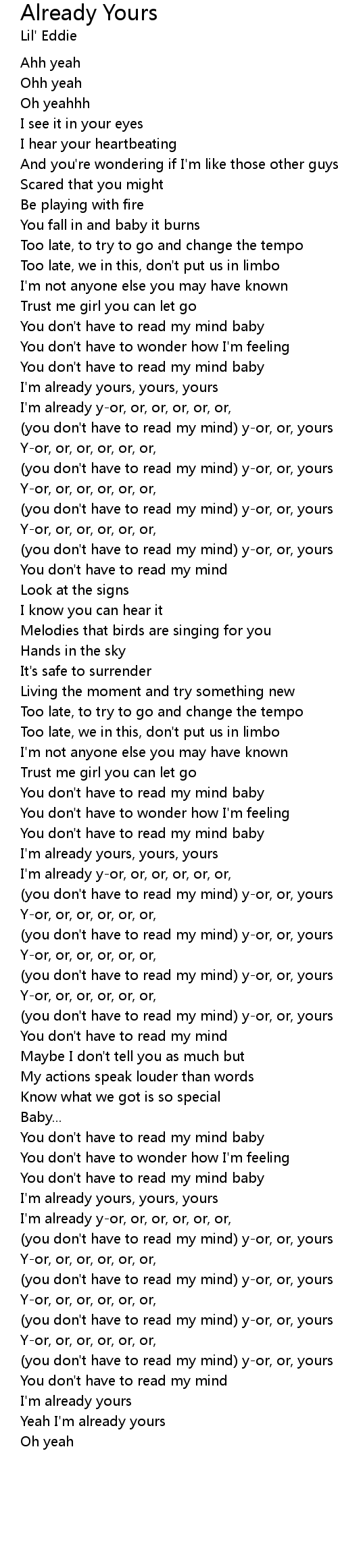 I'm already yours, yours, yours |