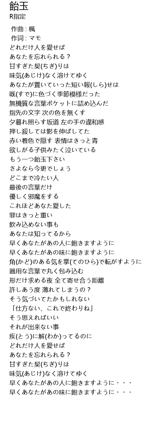 | Song | 飴玉 |