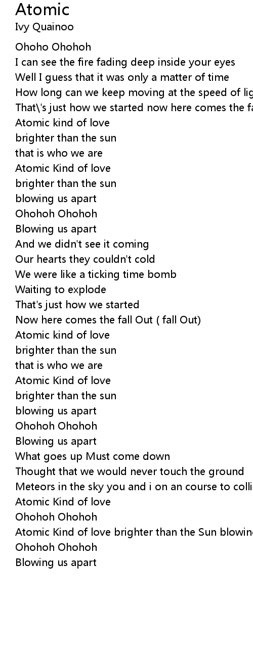 Atomic Kind of love brighter than the Sun blowing us apart |