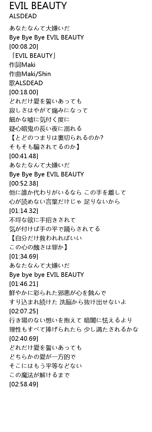 | [00:49.30] | Bye Bye Bye EVIL BEAUTY |