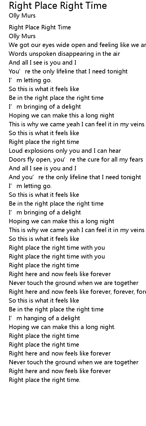 | Right place the right time with you | |