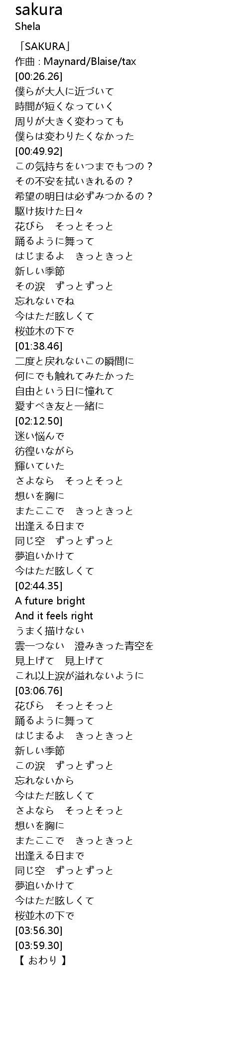 | [00:01.26] | 「SAKURA」 |