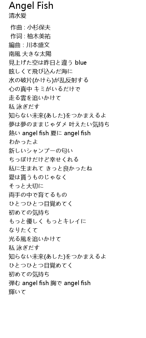 | [03:22.83] | 弾む angel fish 胸で angel fish |