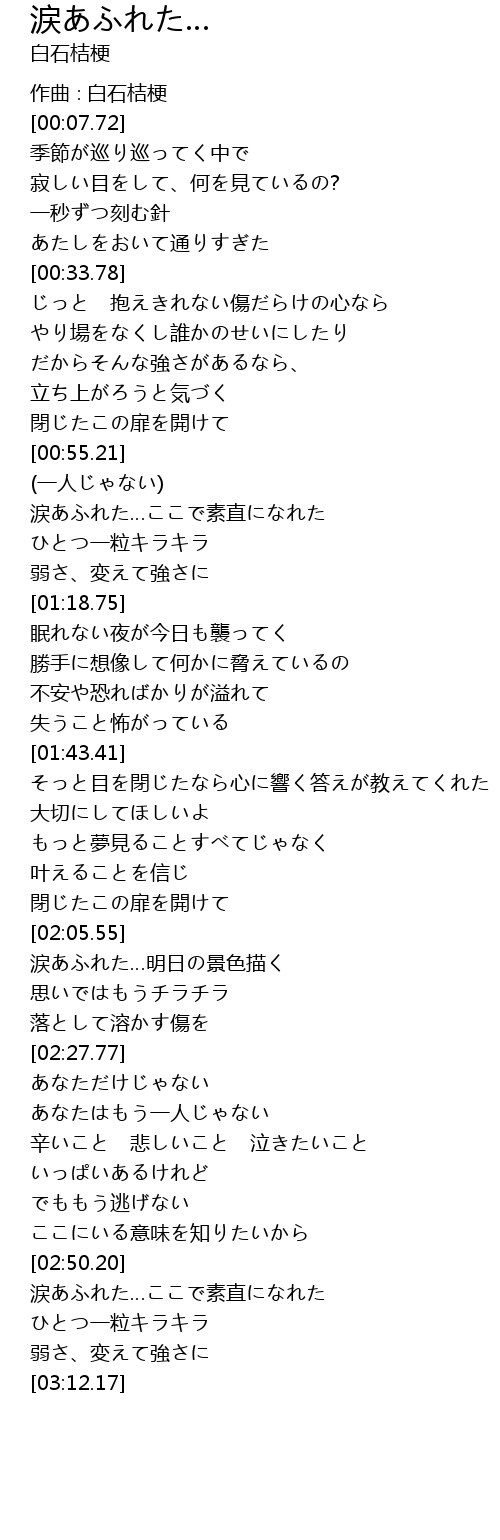 | [02:50.73] | 涙あふれた…ここで素直になれた |