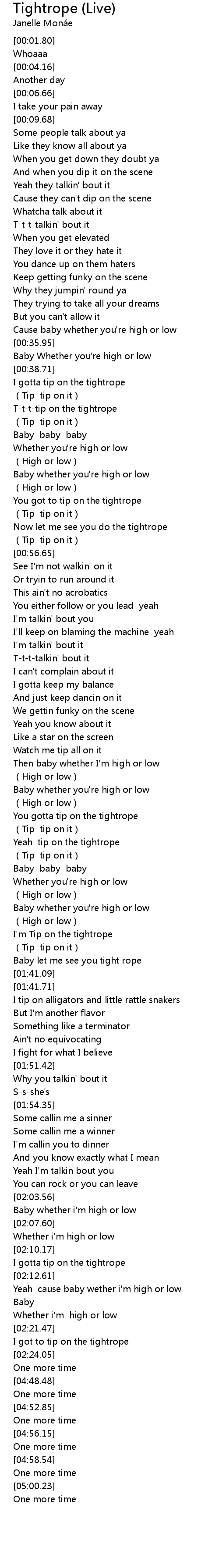 | [00:42.68] | T-t-t-tip on the tightrope |