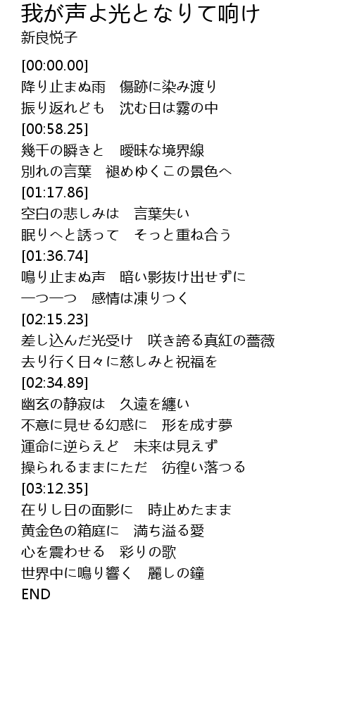 | [02:25.63] | 去り行く日々に慈しみと祝福を |