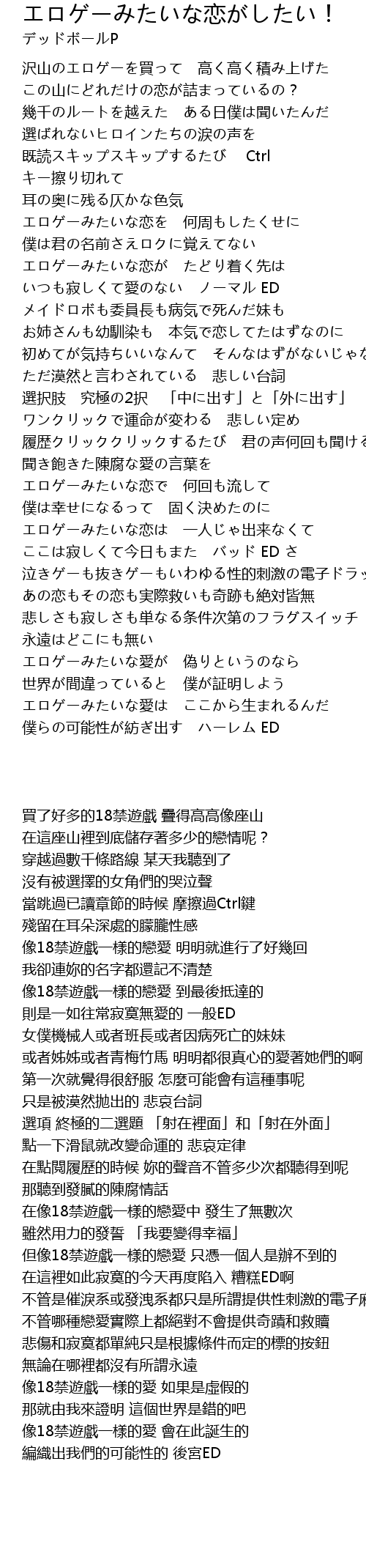 | [03:23.00] | エロゲーみたいな愛は ここから生まれるんだ |