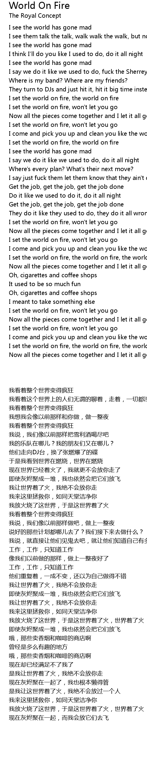 I set the world on fire, the world on fire |