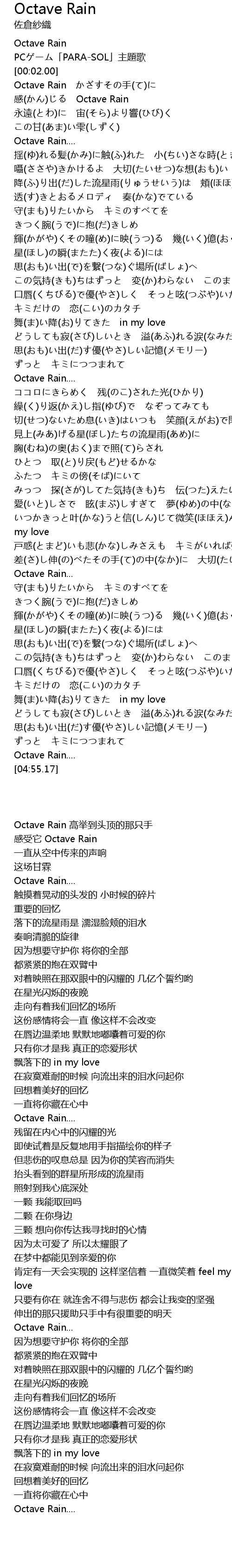 | [00:09.10] | 感(かん)じる Octave Rain |