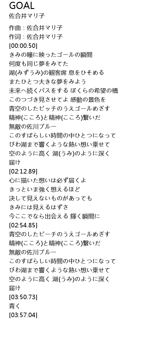 | [00:45.54] | きみの瞳に映ったゴールの瞬間 |
