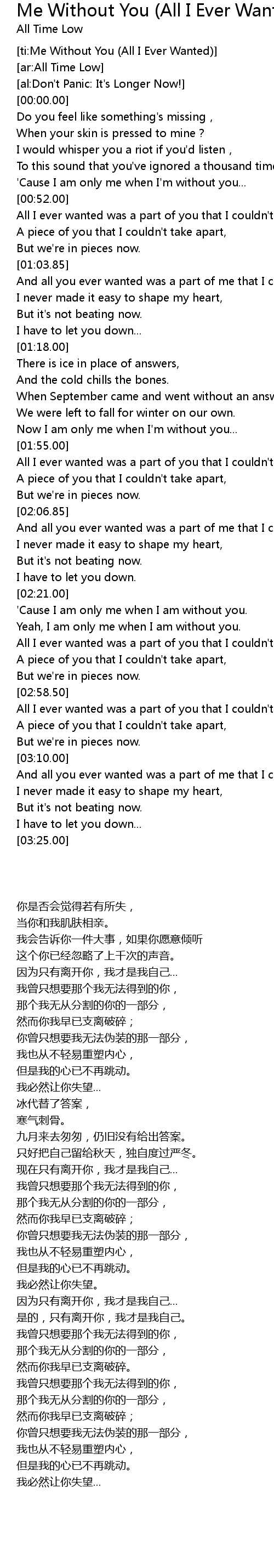 | [ti:Me Without You (All I Ever Wanted)] | |