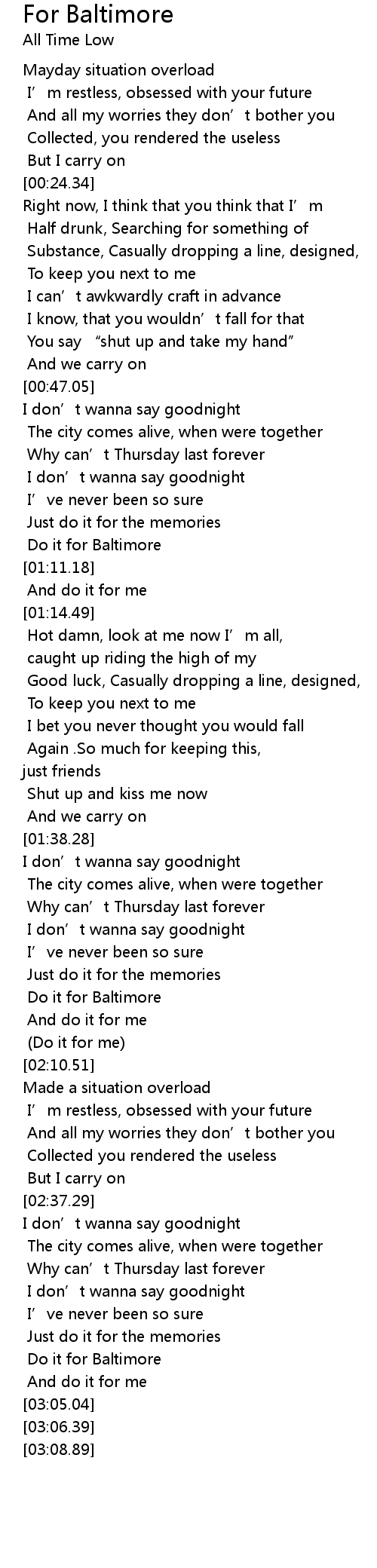 | [02:59.98] | Do it for Baltimore |
