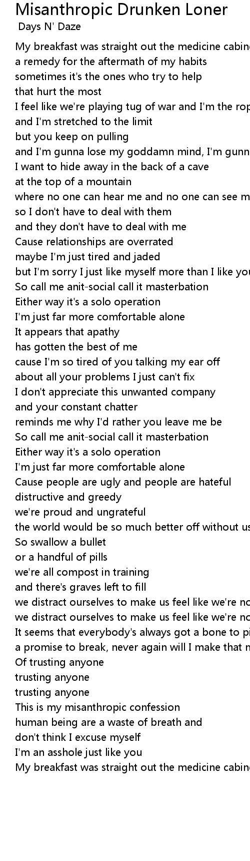 Song Misanthropic Drunken Loner