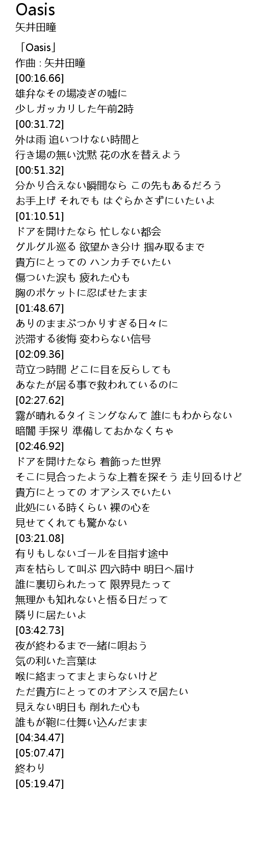 | [03:04.74] | 貴方にとっての オアシスでいたい |
