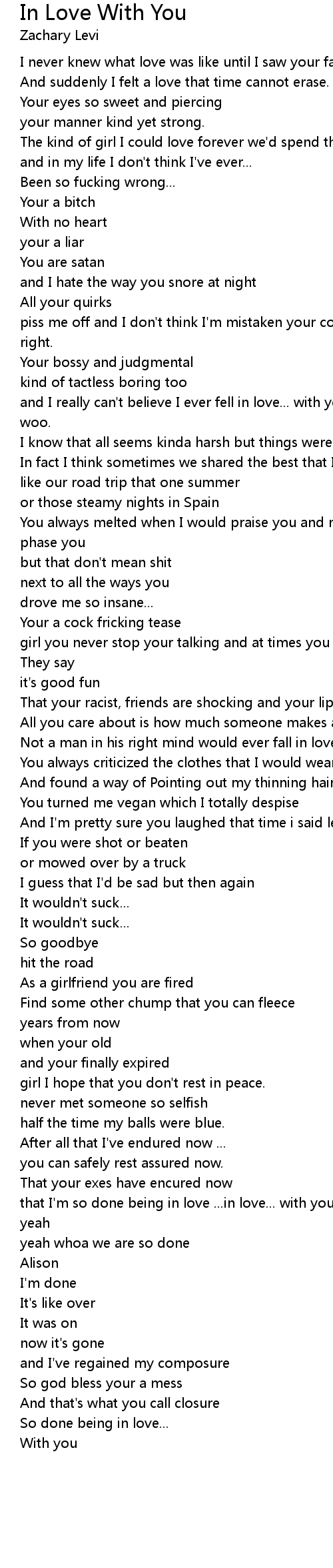that I'm so done being in love ...in love... with you whoa whoa were through yeah |