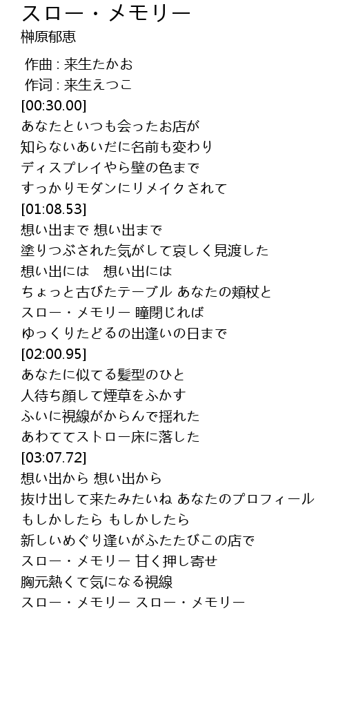 | [03:43.91] | スロー・メモリー 甘く押し寄せ |