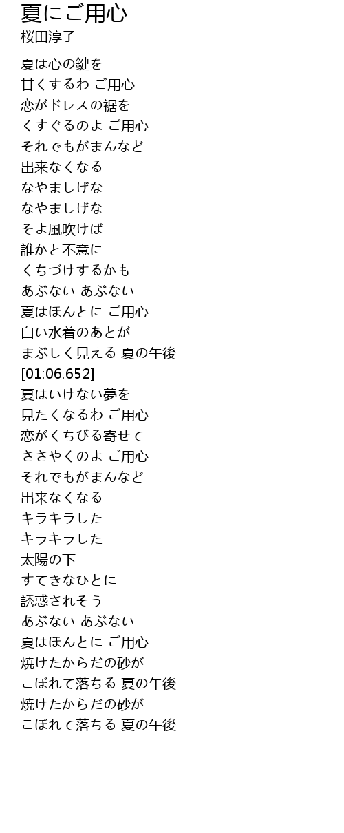 | [01:45.650] | 夏はほんとに ご用心 |