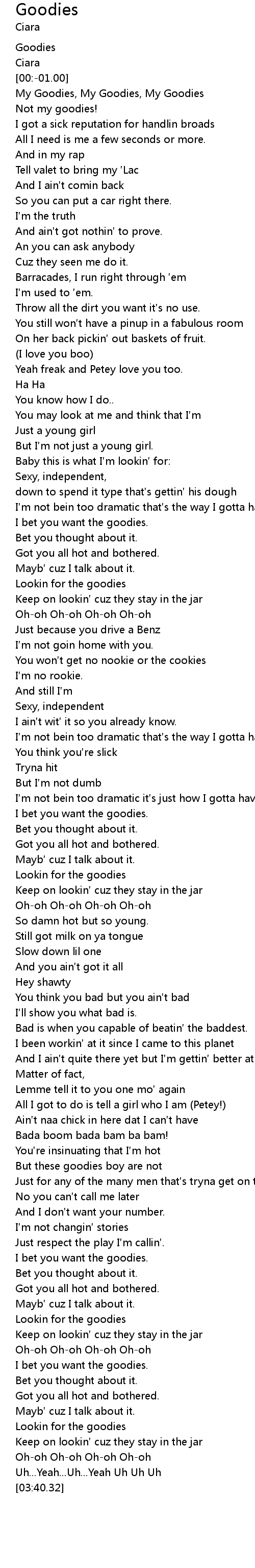 | [00:00.00] | My Goodies, My Goodies, My Goodies |