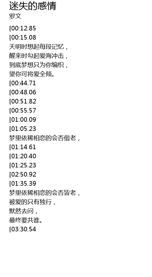 | [02:30.76] | 梦里依稀相恋的会否皆老, |
