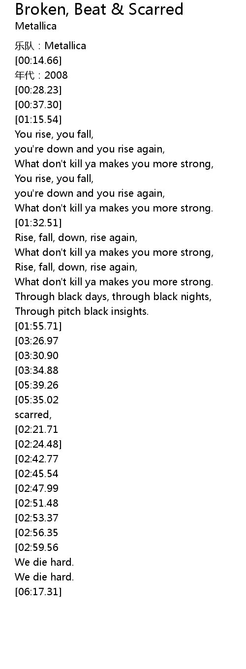 | [03:12.82][02:56.35] | What don't kill ya makes you more strong. |