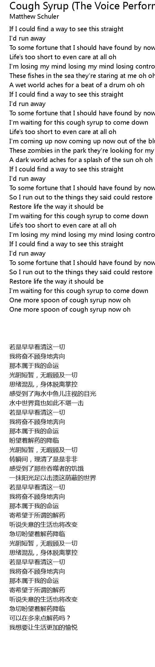One more spoon of cough syrup now oh |