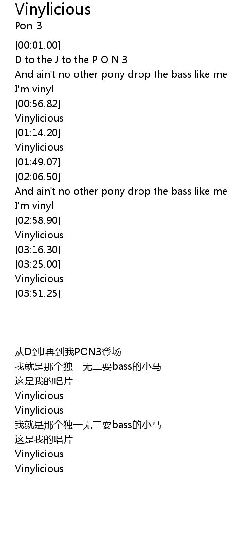 | [00:54.14] | And ain't no other pony drop the bass like me |