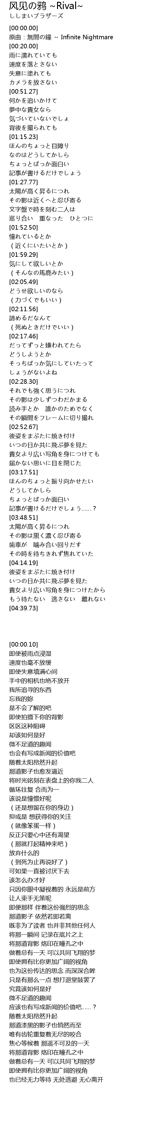 | [00:00.10] | 原曲:無間の鐘 ~ Infinite Nightmare |