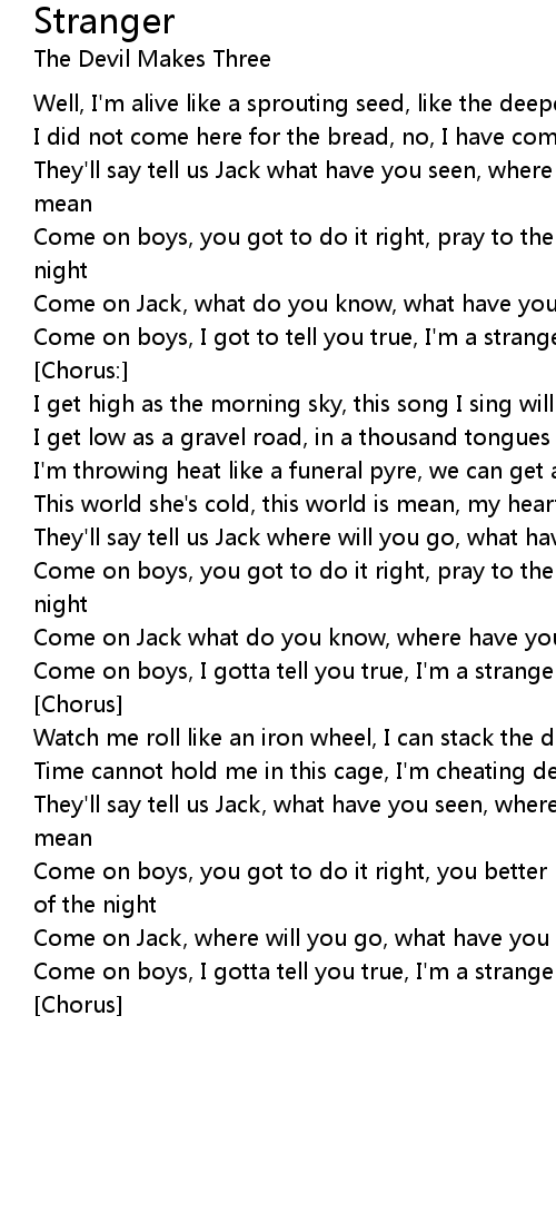 Come on boys, I gotta tell you true, I'm a stranger here just like you |