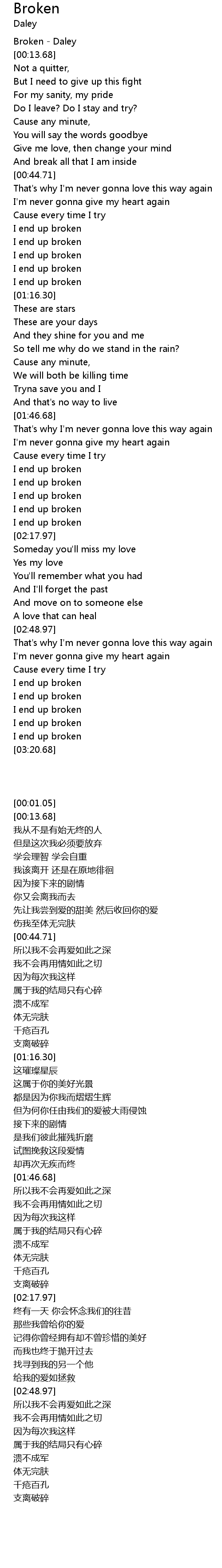 | [03:01.04] | I end up broken |