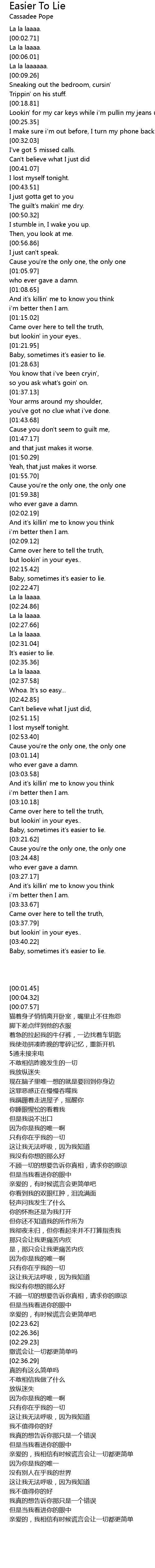 Baby, sometimes it's easier to lie. |
