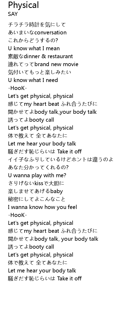 | Let' s get physical, physical | |