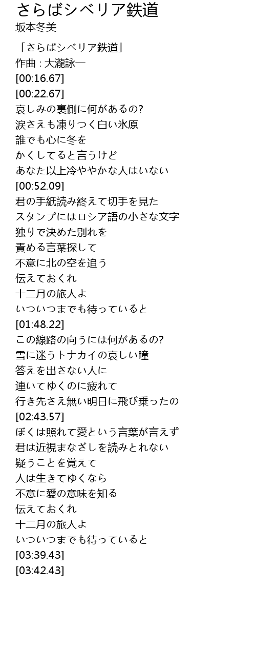 | [00:01.67] | 「さらばシベリア鉄道」 |
