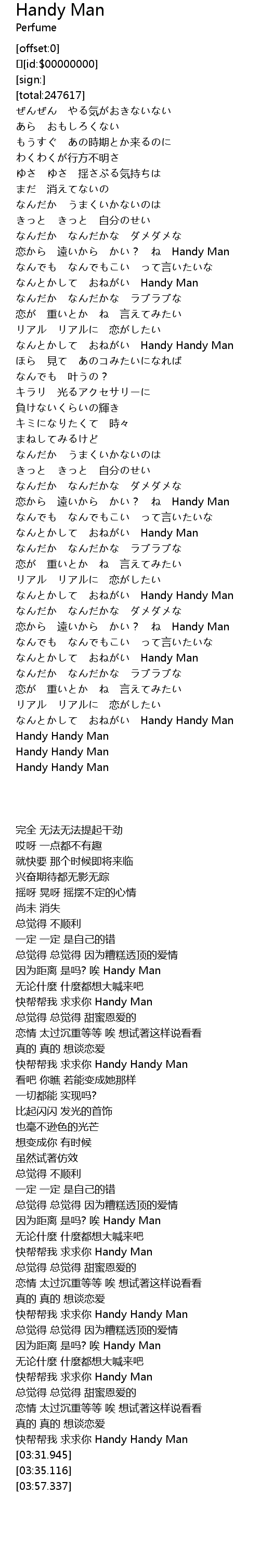 | [03:25.395] | なんとかして おねがい Handy Handy Man |