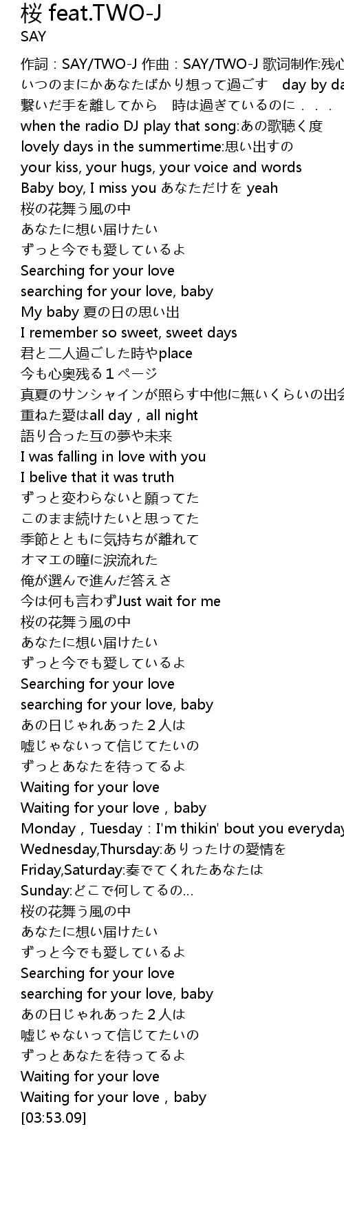 | [00:02.06] | zuo ci: SAY TWOJ zuo qu: SAY TWOJ ge ci zhi zuo: can xin |