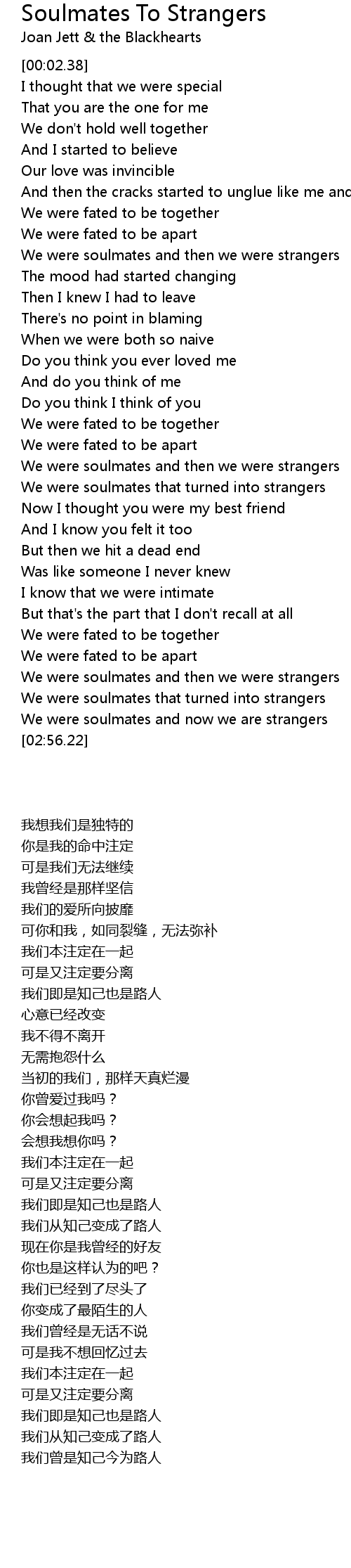 We were soulmates and now we are strangers |