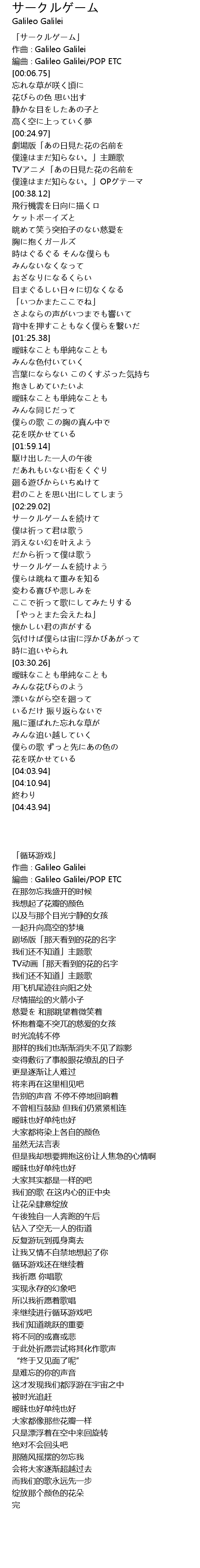 | [00:04.75] | biān qū Galileo Galilei POP ETC |