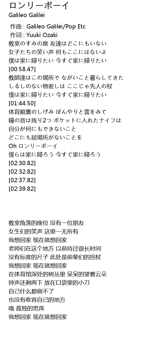 | [00:46.95] | 僕は家に帰りたい 今すぐ家に帰りたい |