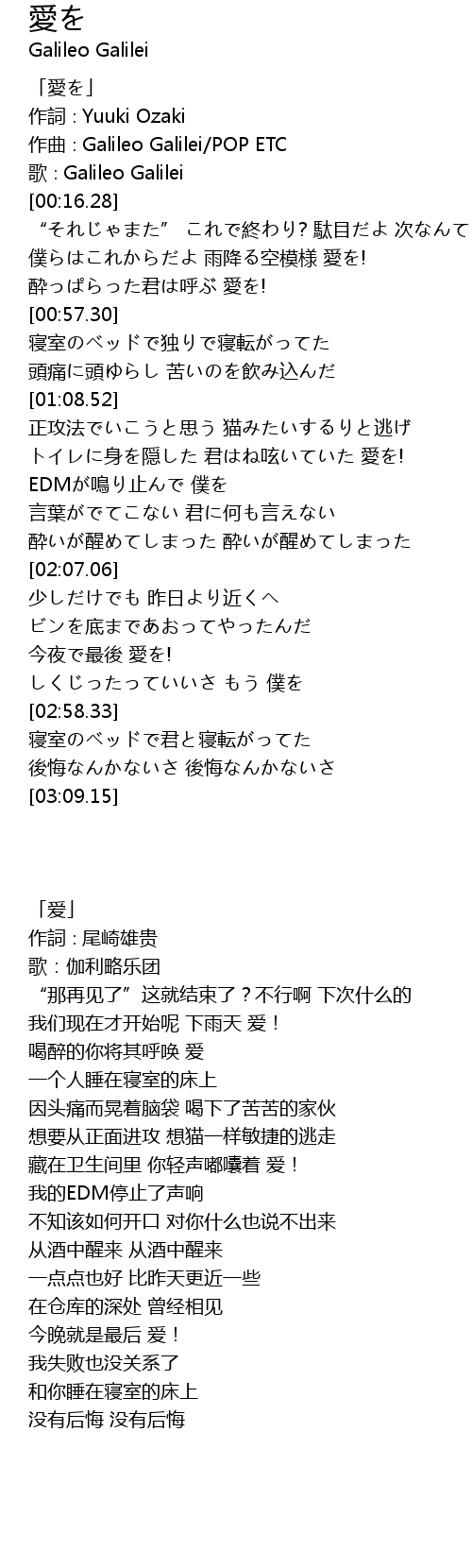 | [00:08.28] | zuo qu Galileo Galilei POP ETC |