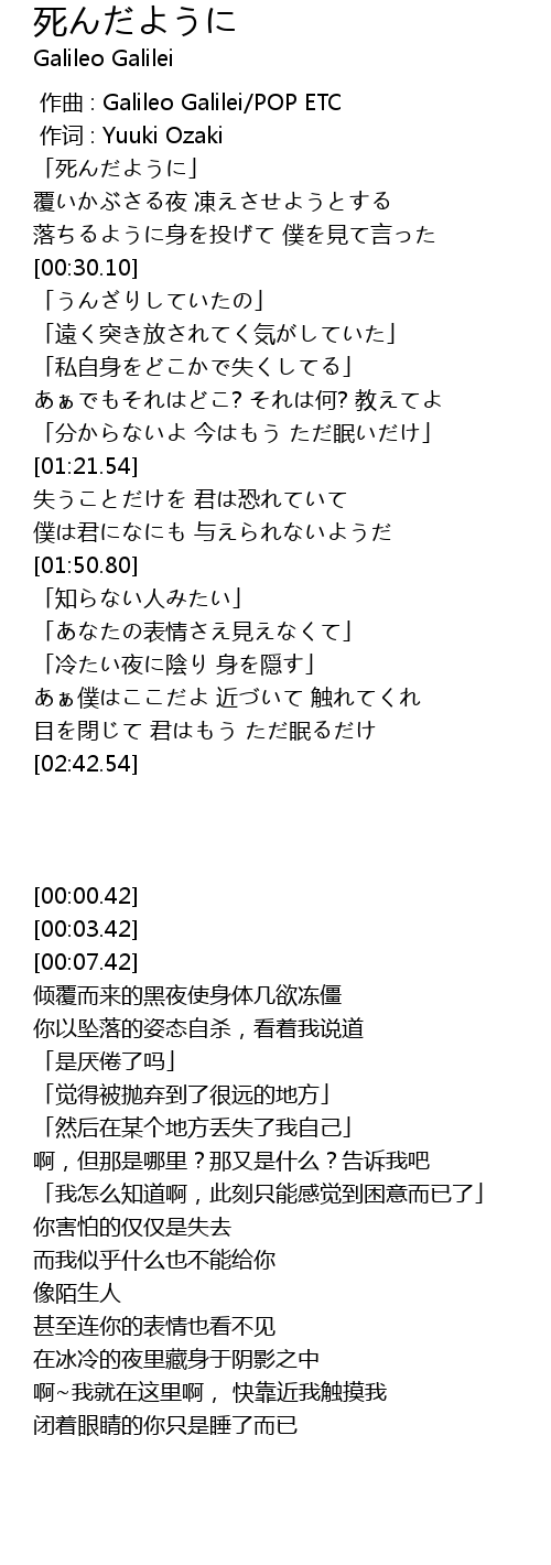 | [00:00.00] | zuo qu : Galileo Galilei POP ETC |