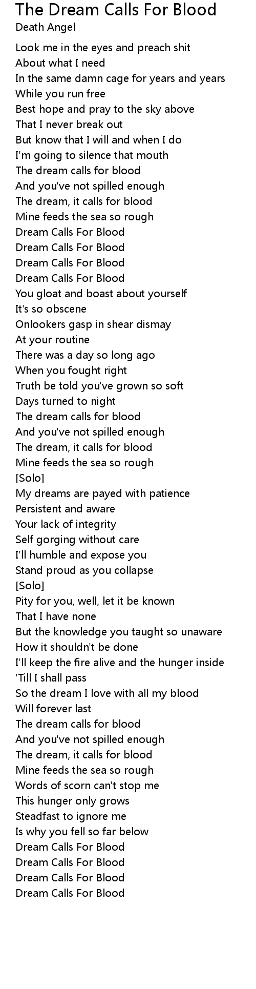 Dream Calls For Blood |