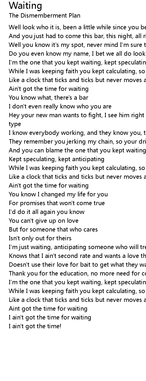I'm the one that you kept waiting, kept speculating, kept anticipating