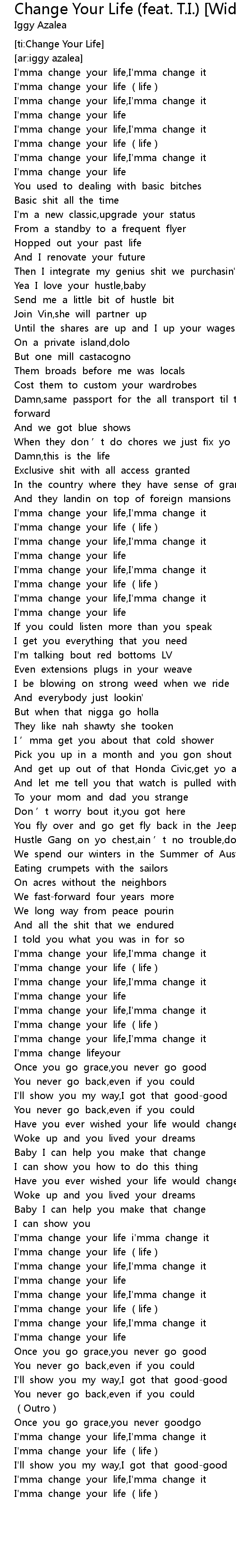 | [01:02.101] | I'mma change your life,I'mma change it |