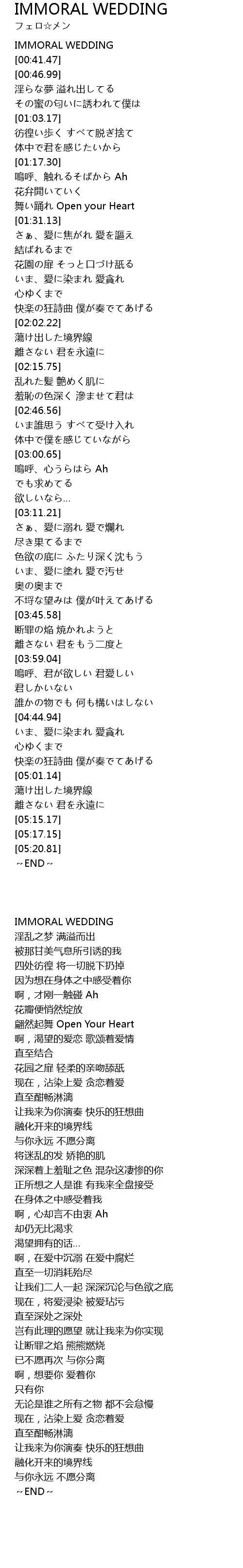 | [00:00.00] | IMMORAL WEDDING |