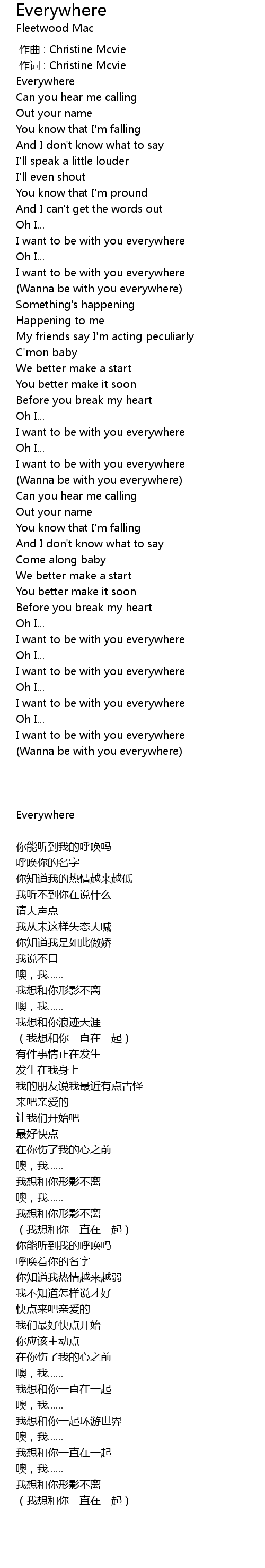 | [00:00.343] | 作词 : Christine Mcvie |
