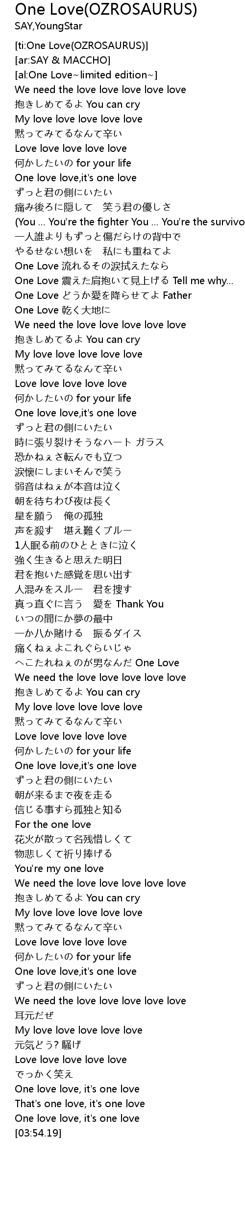 | [01:03.79] | One Love 流れるその涙拭えたなら |