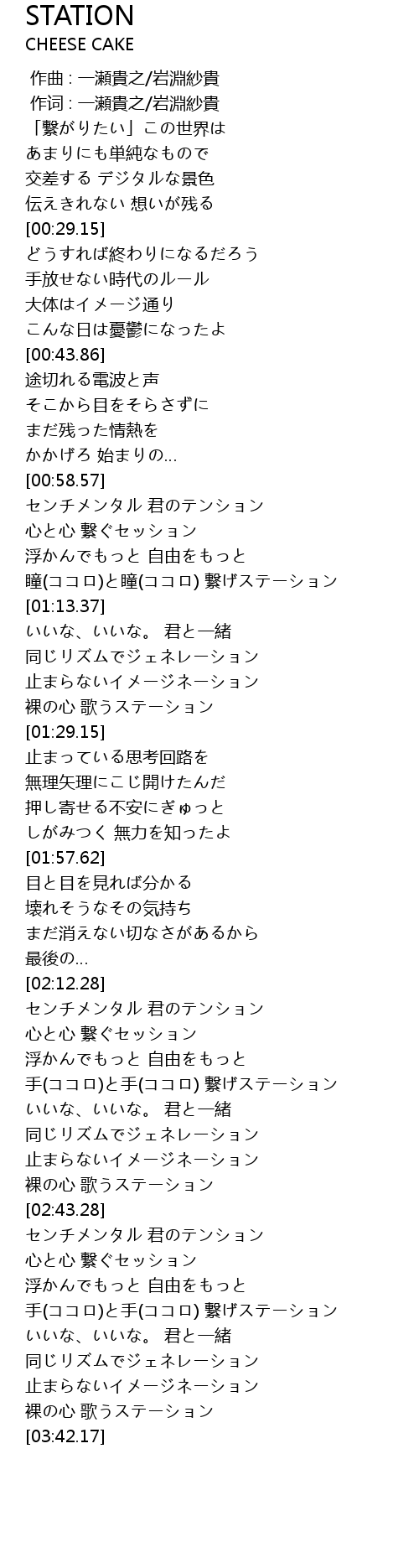| [03:23.06] | 手(ココロ)と手(ココロ) 繋げステーション |