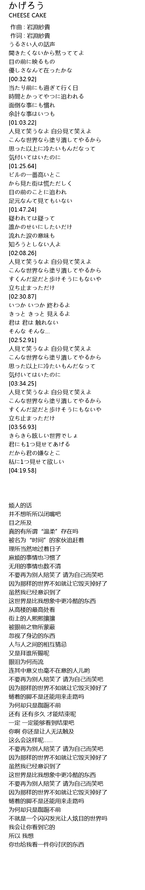 | [00:01.00] | 作词 : 岩淵紗貴 |