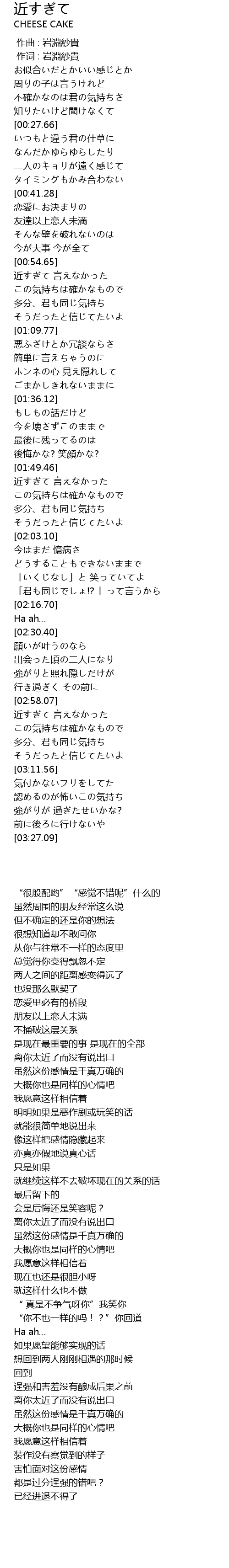| [02:58.68] | 近すぎて 言えなかった |