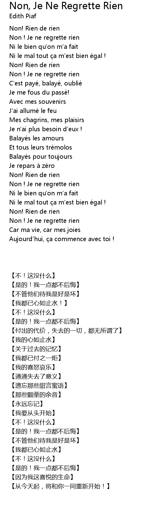 | [01:40.900] | Ni le mal tout a m' est bien e gal ! |